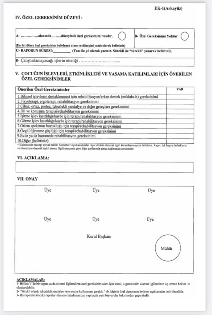 “”ÇÖZGER/Engelli Sağlık Kurulu Raporu/Sağlık Kurulu Raporunda;