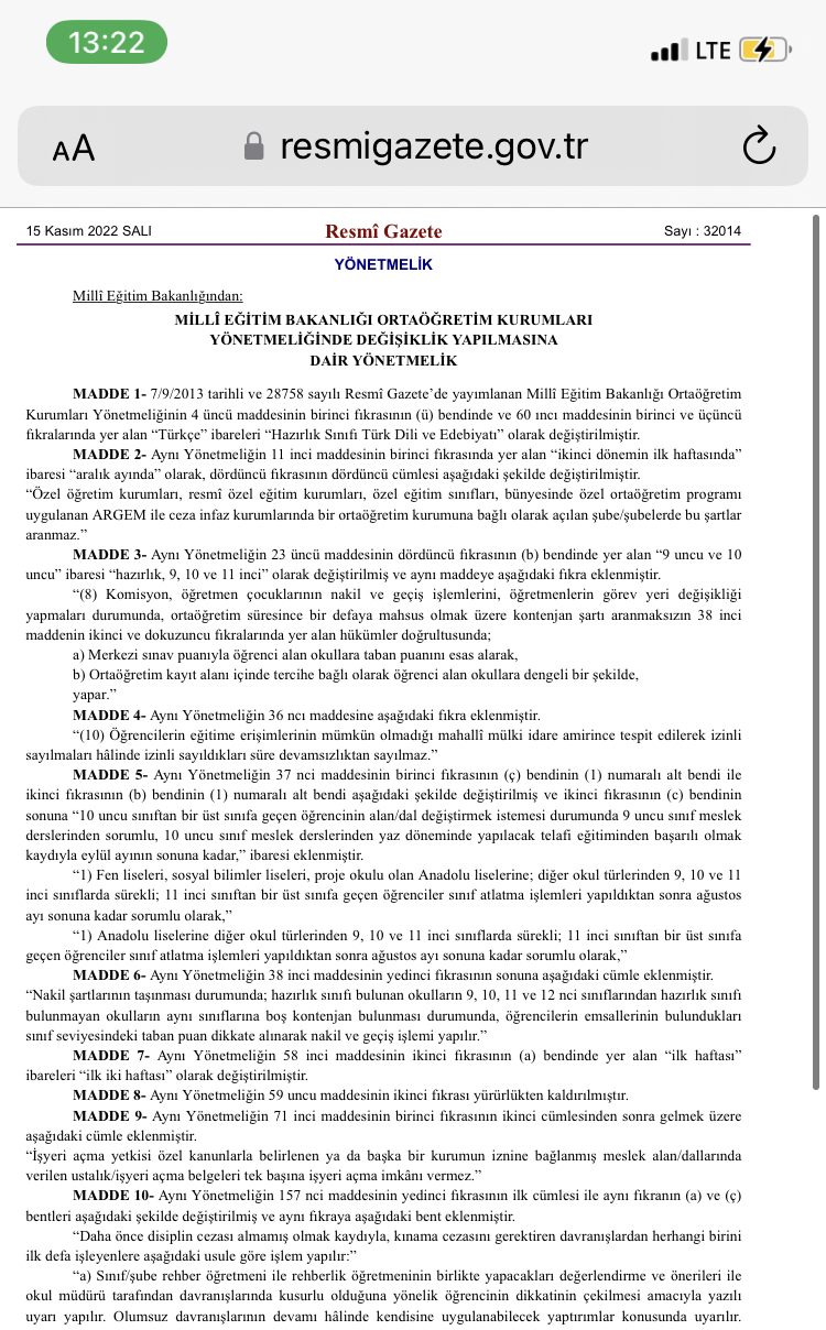 Okumaya devam et “Ortaöğretim Kurumları Yönetmeliğinde Değişiklik Yapılmasına Dair Yönetmelik Yayımlandı……” →