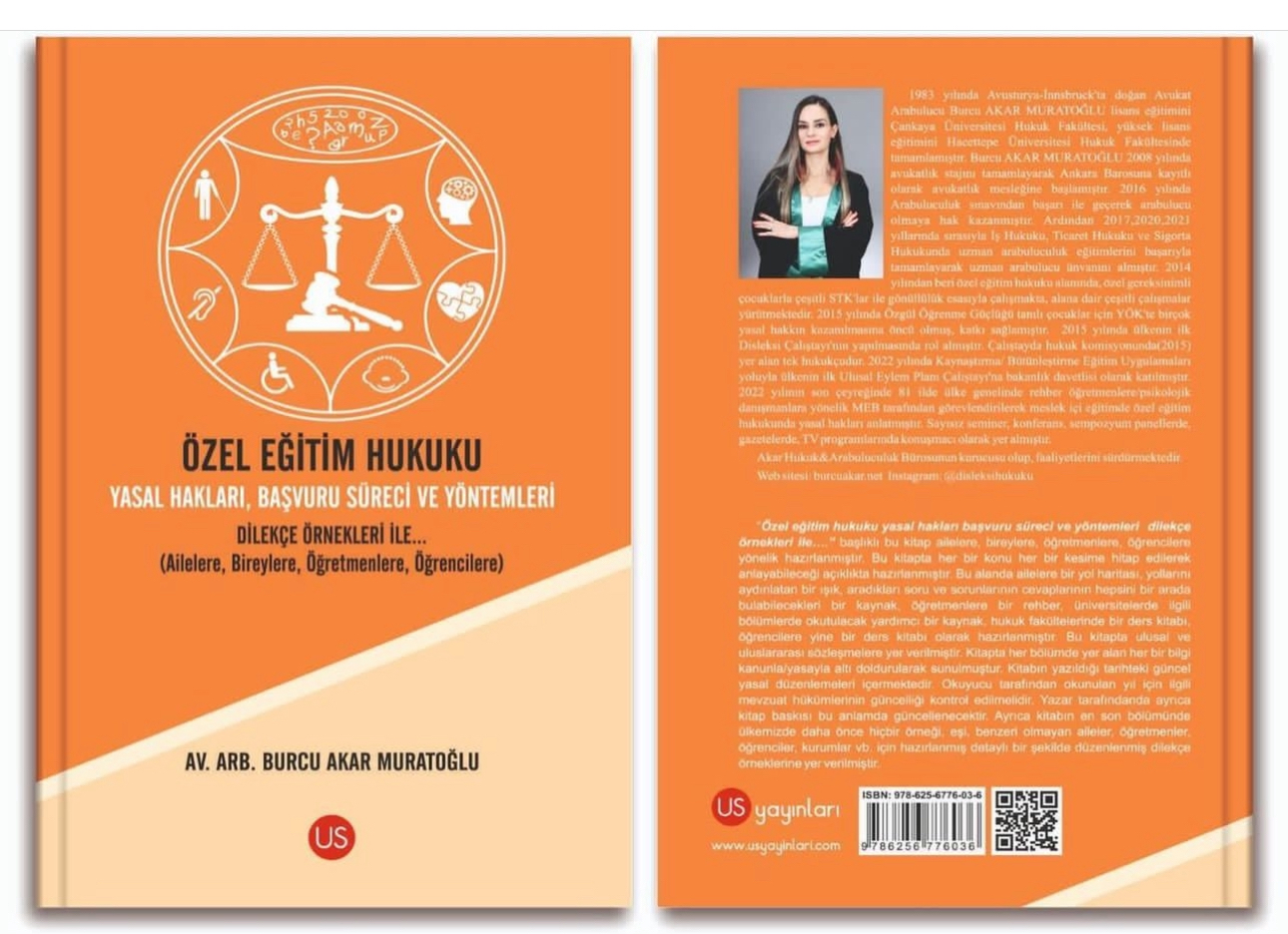 Özel Eğitim Hukuku Yasal Hakları, Başvuru Süreci ve Yöntemleri Dilekçe Örnekleri İle….(Ailelere, Bireylere, Öğretmenlere, Öğrencilere) İsimli Kitabım 24.KASIM.2023 Tarihinde Yayımlandı. US Yayınevi ve tüm kitapçılar ile online kitapçılarda satışa sunulmuştur. Bu kitap ne anlatıyor? Şu şekilde özetleyebilirim: